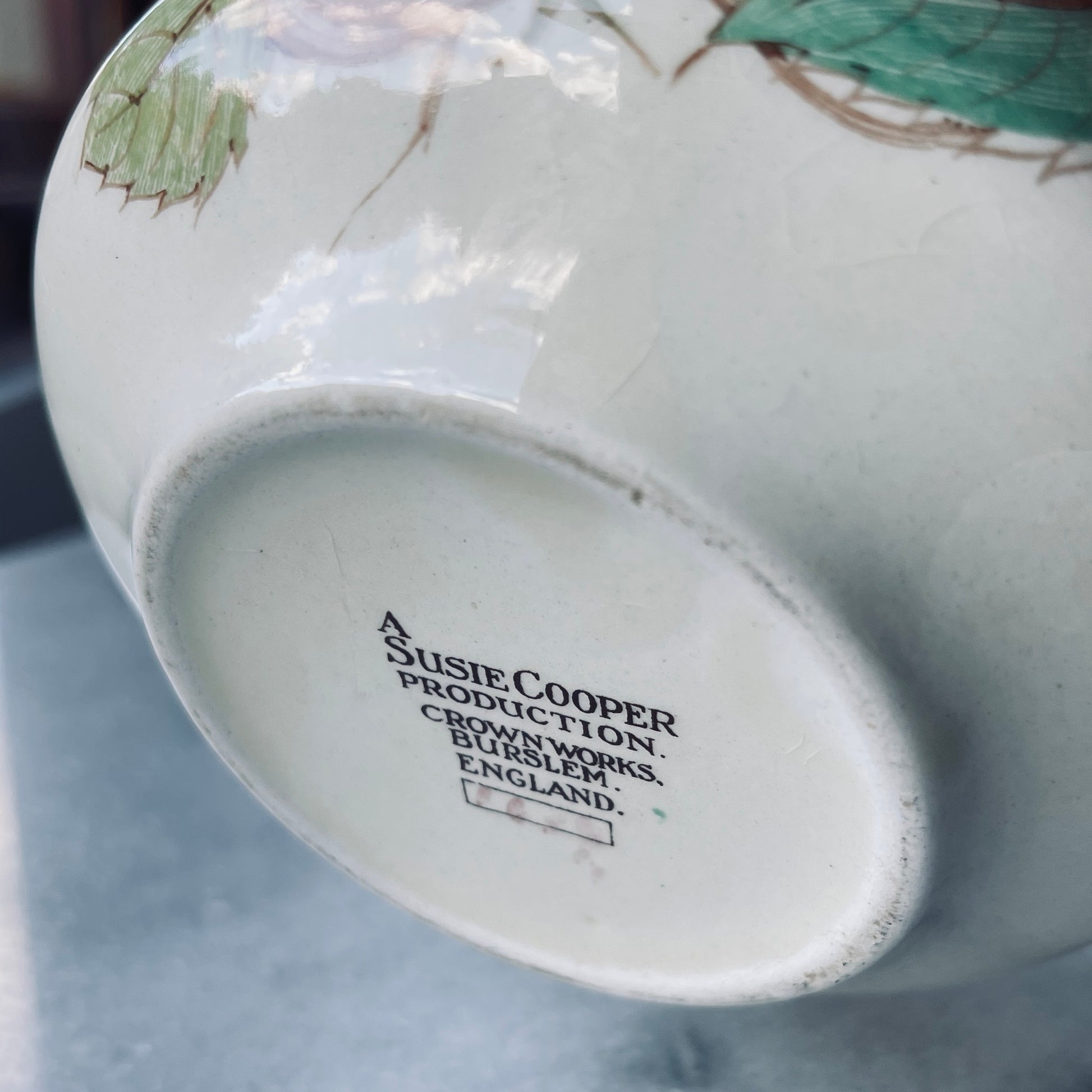 20世紀を代表するイギリスの女性陶磁器デザイナー、スージー・クーパー。70年を超える長い現役時代を振り返ると、1920〜30年代のアールデコ時代から、ケストラル(=チョウゲンポウ(鳥))シェイプに当時の高品質石版画を利用してパステルカラーの草花を転写した作品など、幅広いデザインを世に送り出しました。戦後の度重なる危機を乗り切った、手描きの作品なども数多く残っています。