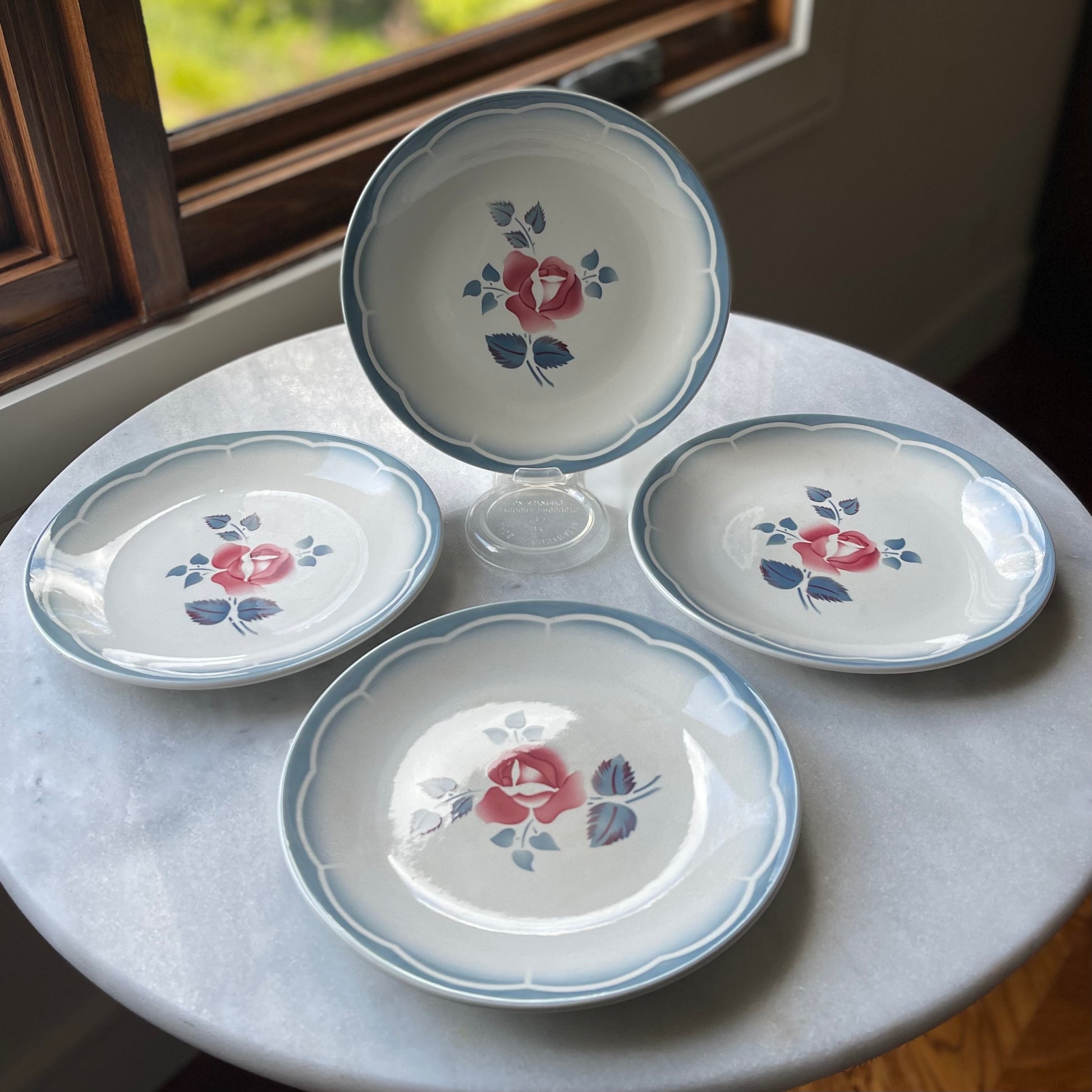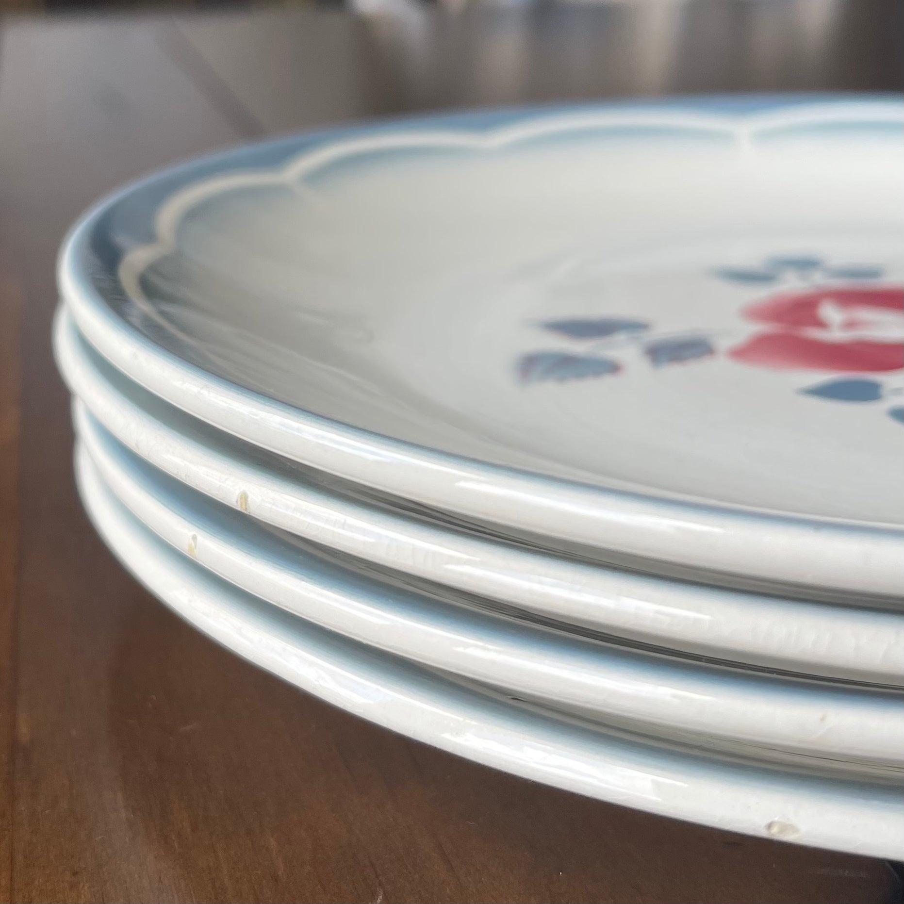 一枚一枚微妙に色のトーンが違ったり、ヴィンテージ具合も様々な4枚のアシエットです。もれなく貫入が入っておりますが、もれなく艶もあり目立つ欠けやひび割れもなくまだまだ現役でございます。引き続き育てていただける持ち主募集中でございます。