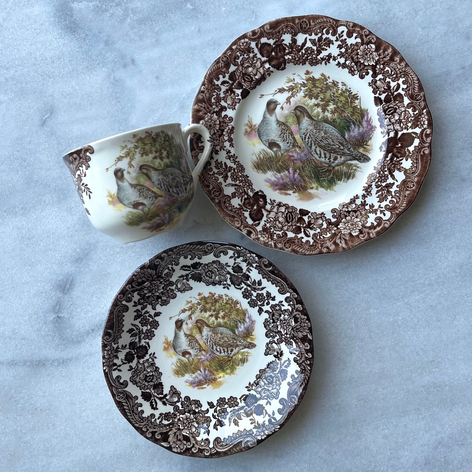 🇬🇧ロイヤルウースター パリッシー ゲームシリーズ ウズラ カップ、ソーサー、サイドプレートのトリオ