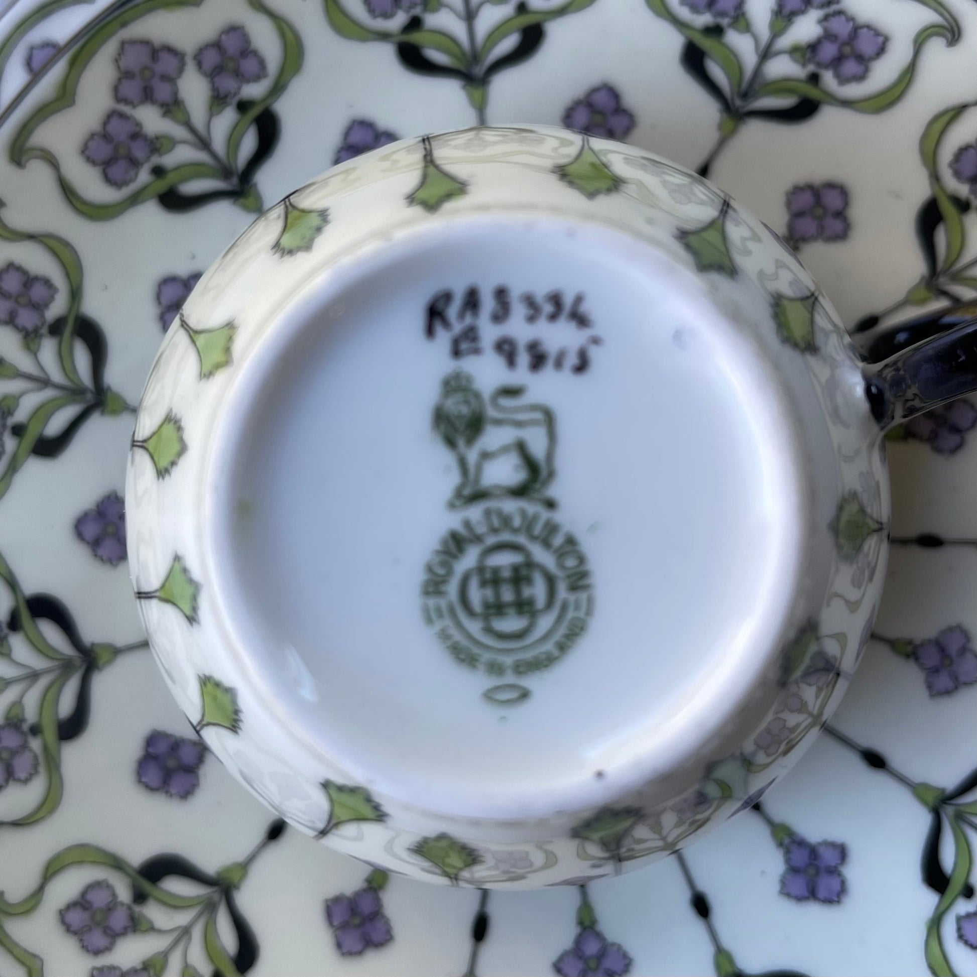 🇬🇧ロイヤルドルトン アンティーク アール・ヌーヴォー コーヒーカップ&ソーサー+サイドプレート