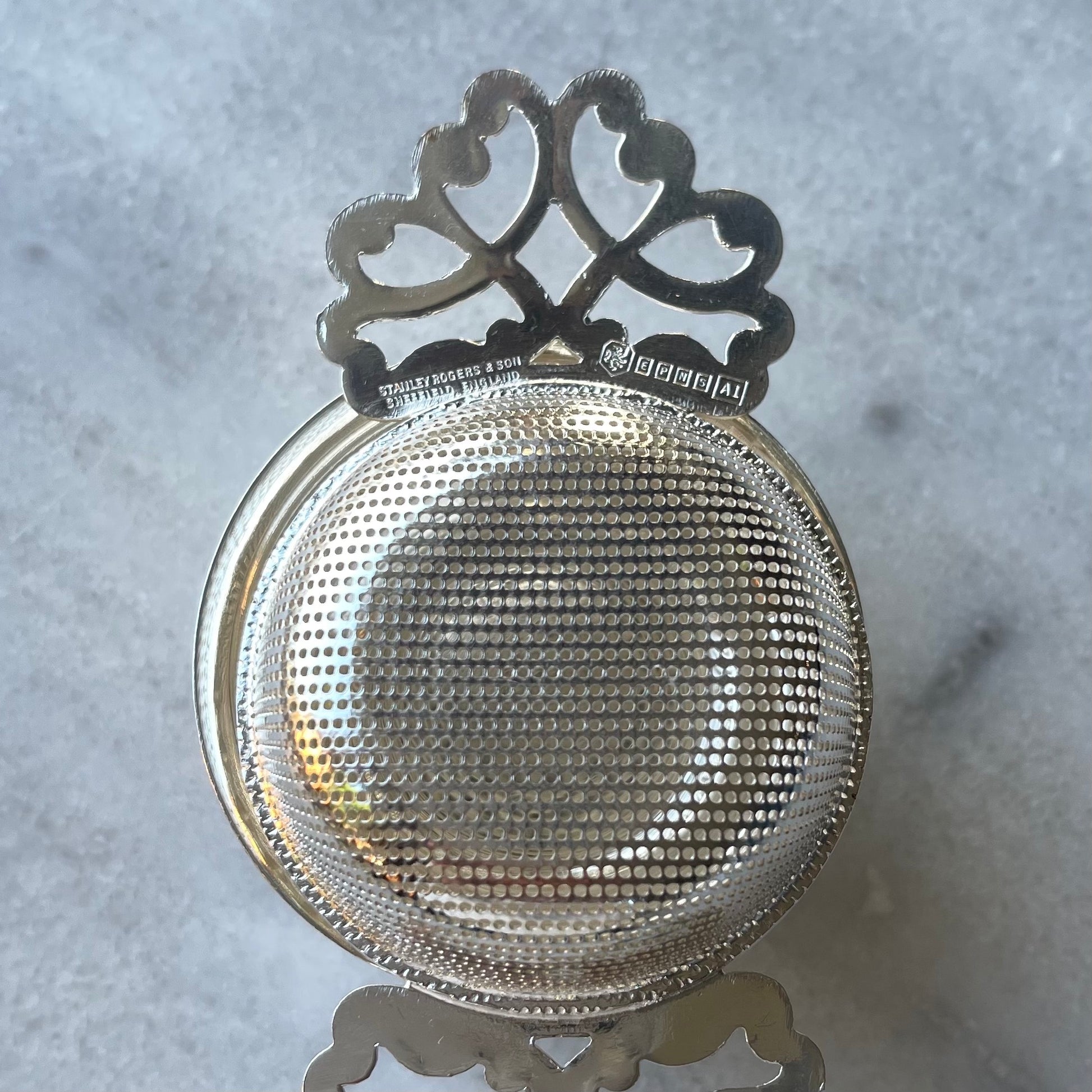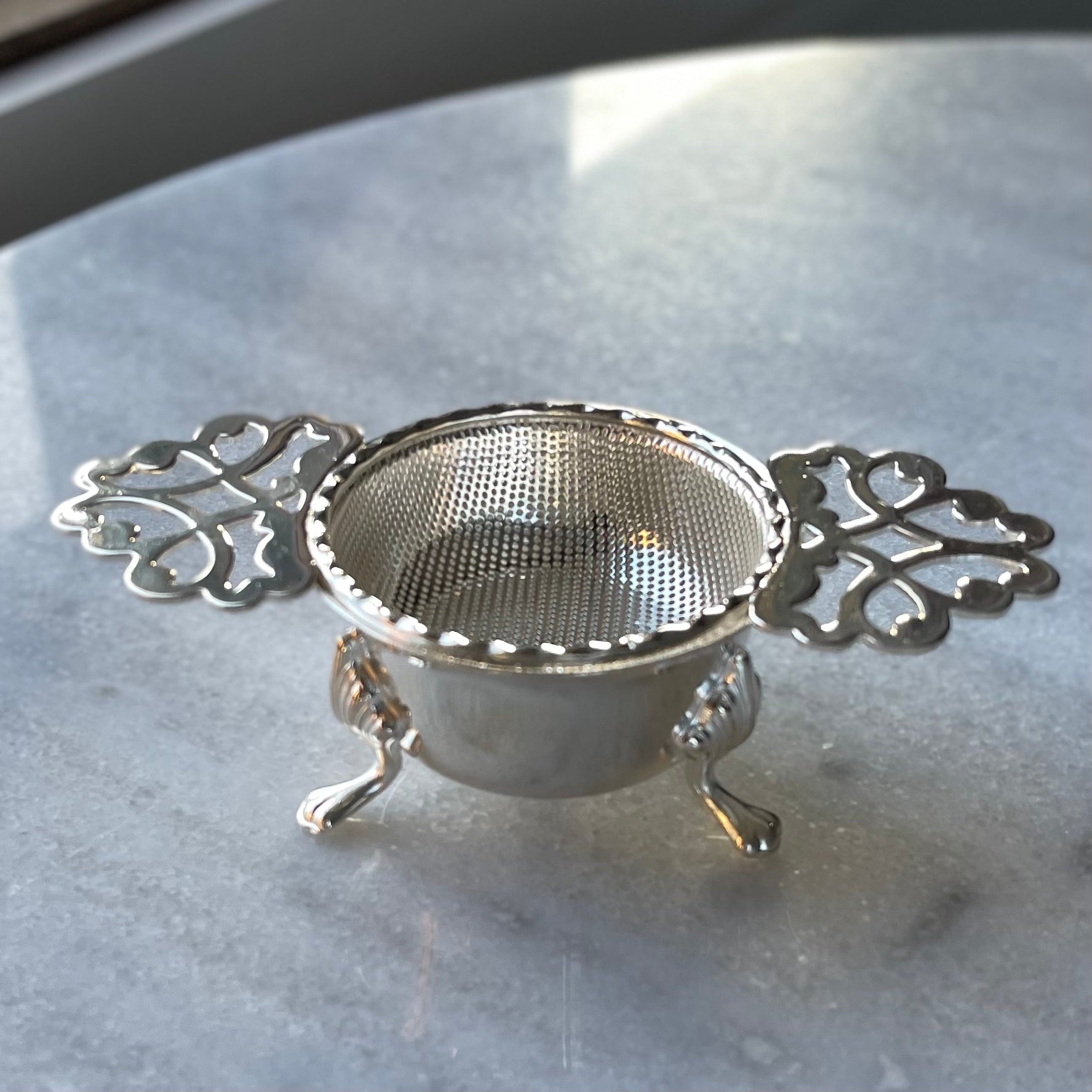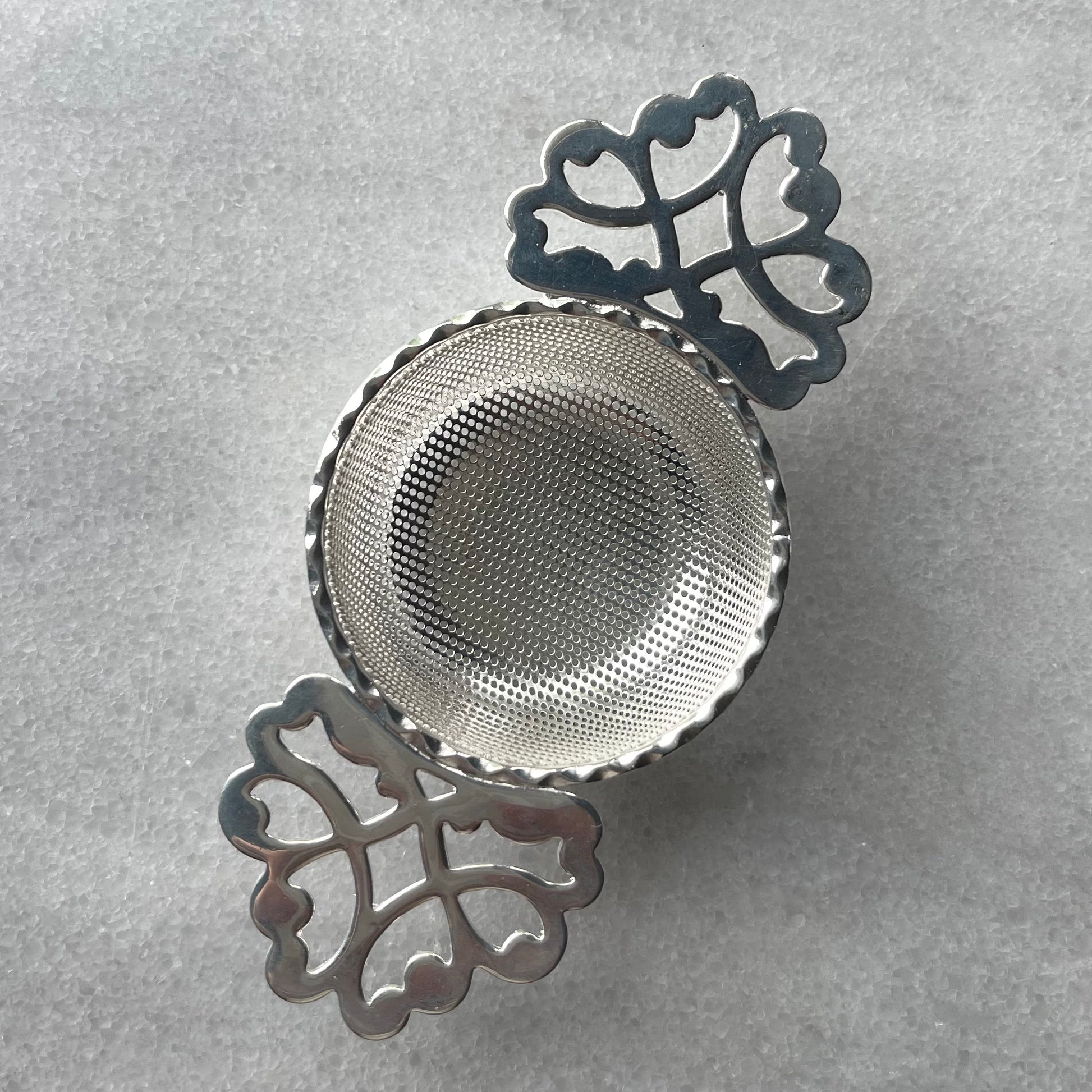 実は、しばらく前にこれと全く同じデザインの純金ティーストレーナーを目にしており、連れて帰らなかったことを後悔していた店主。そんな矢先に出会ったお品です。今回のものはシルバープレートですが、やはりどうしても純金製のティーストレーナーをという方がいらっしゃいましたら、店主に一言コメントを残しておいていただきますと、次に出会いがあったときにはショップに並ぶ前にご連絡申し上げます。