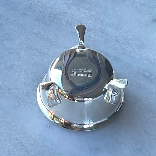 さて、刻印も、純金のホールマークよりのスタイルで入れられているのですが、よくよく近くで見ますとメッキ処理方法を表すEPNS(Electro-plated Nickel Silver)の文字が一文字づつ四角に囲まれて配置されています。EPNSとはニッケルを加えた合金に銀メッキを施したもので、奇しくもイギリスでアフタヌーンティーの歴史が始まった1840年頃に商品化されたメッキ処理技術です。その中でもこちらのお品は「A1(最高品質)グレード」の印が入っています。