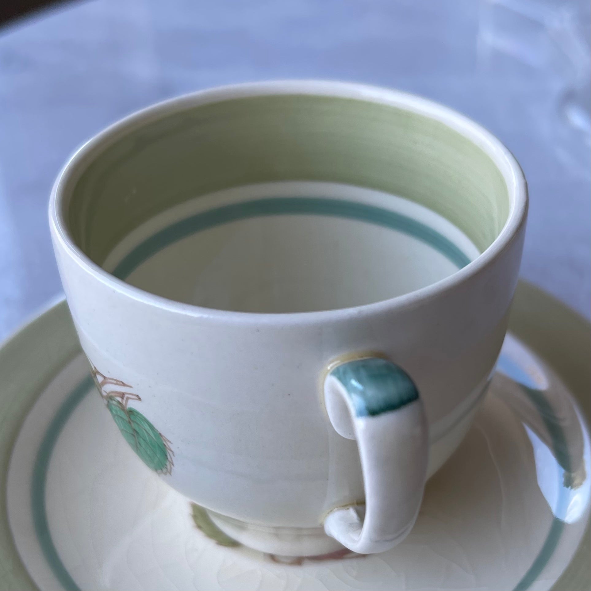 セージ&ターコイズ② カップの底(外側のみ)とソーサーに貫入がございます。またソーサーにシミがあり貫入に染み込んだ状態になっています。