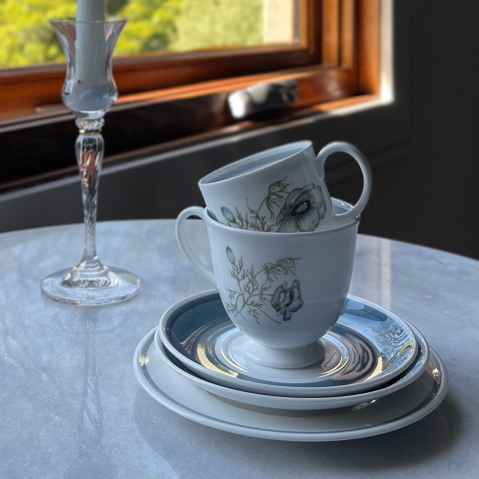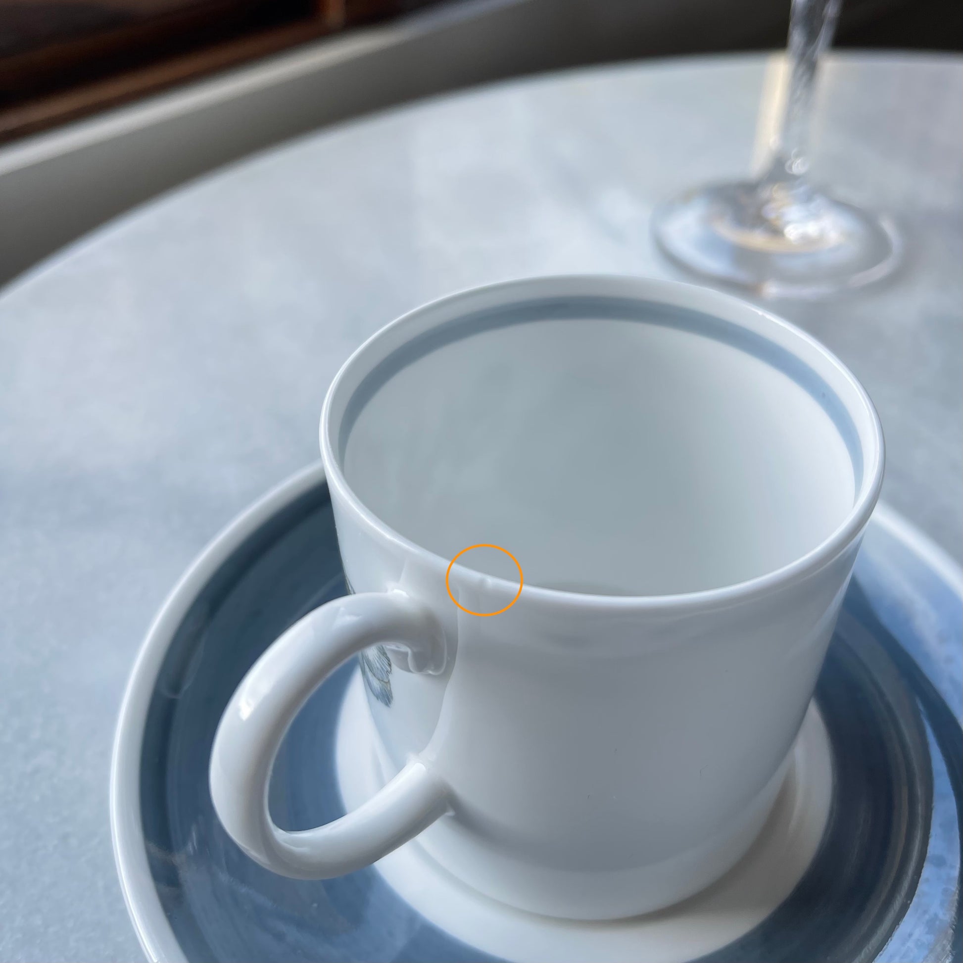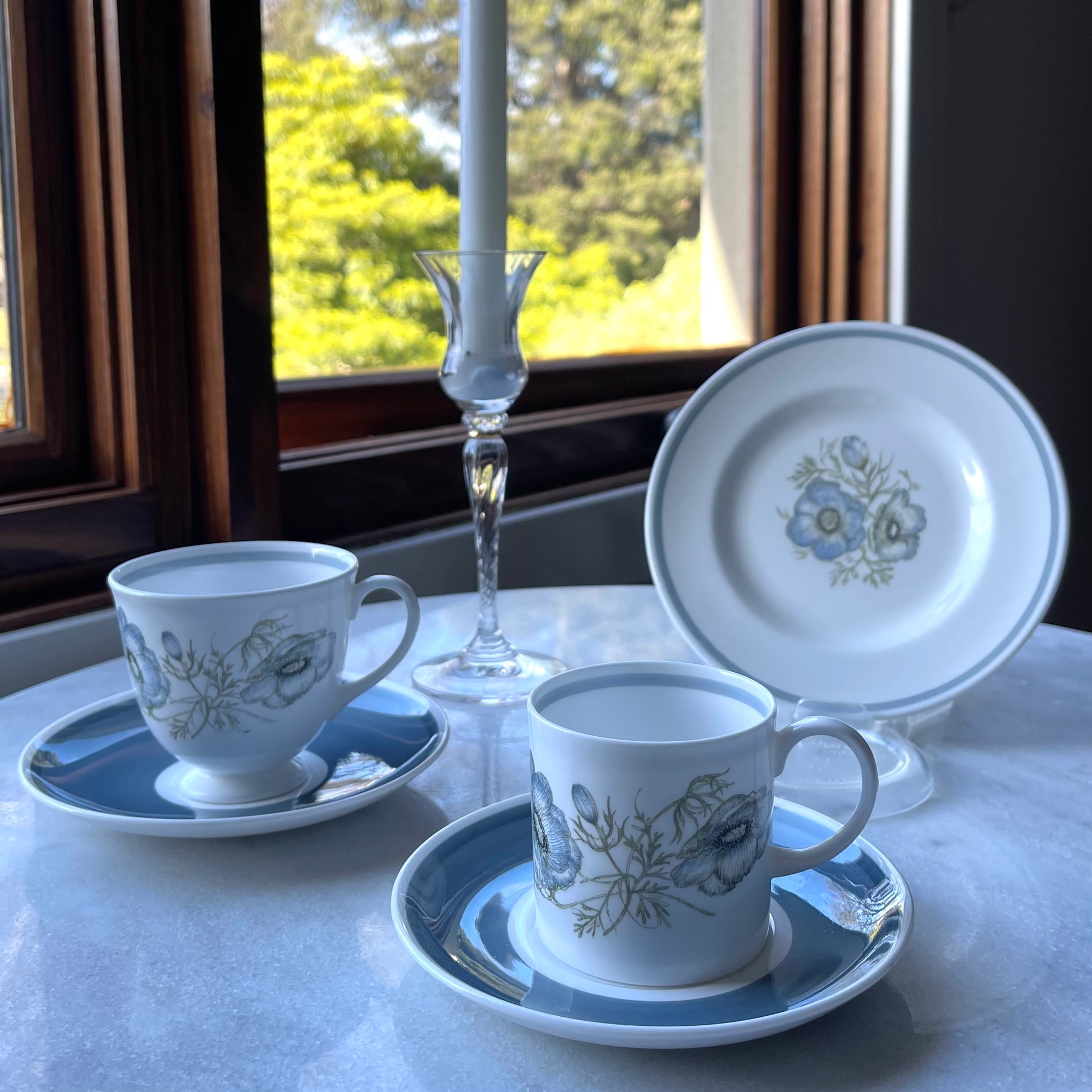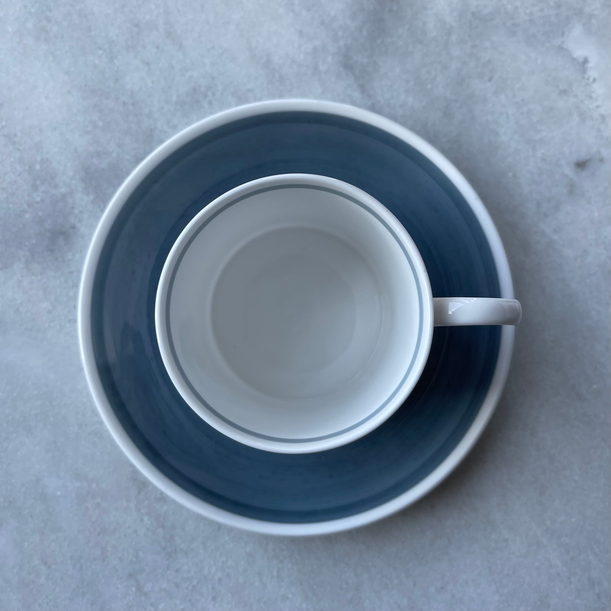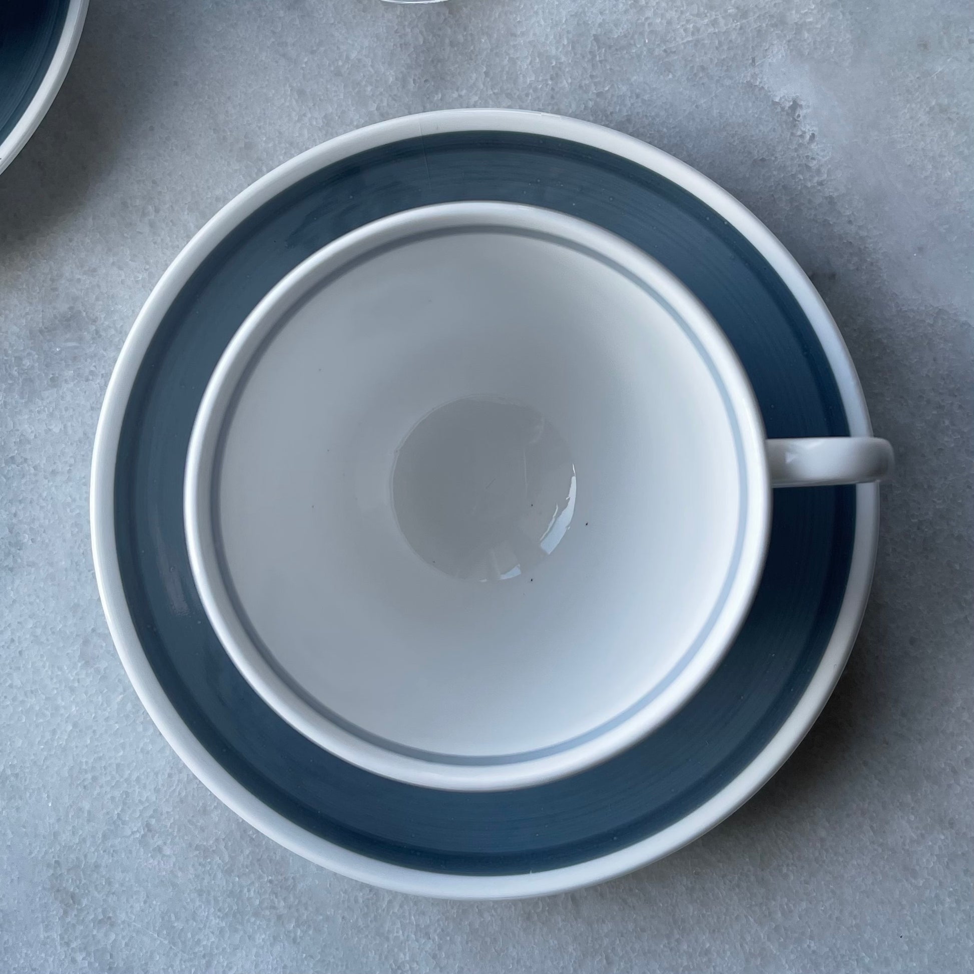 いずれのアイテムも目立つ欠けやヒビ、貫入もなく綺麗なお品です。ティーカップの内側に製造時に出来たと思われる黒点が確認できる他、デミタスカップの縁に極小の欠け(触るとざらつきを感じる程度、サイズにすると1ミリ以下です)がハンドルの近くにございますが、カトラリー痕などもほぼ見られませんし、その他の状態が余りにも良いので、ぜひご愛用くださいませ。