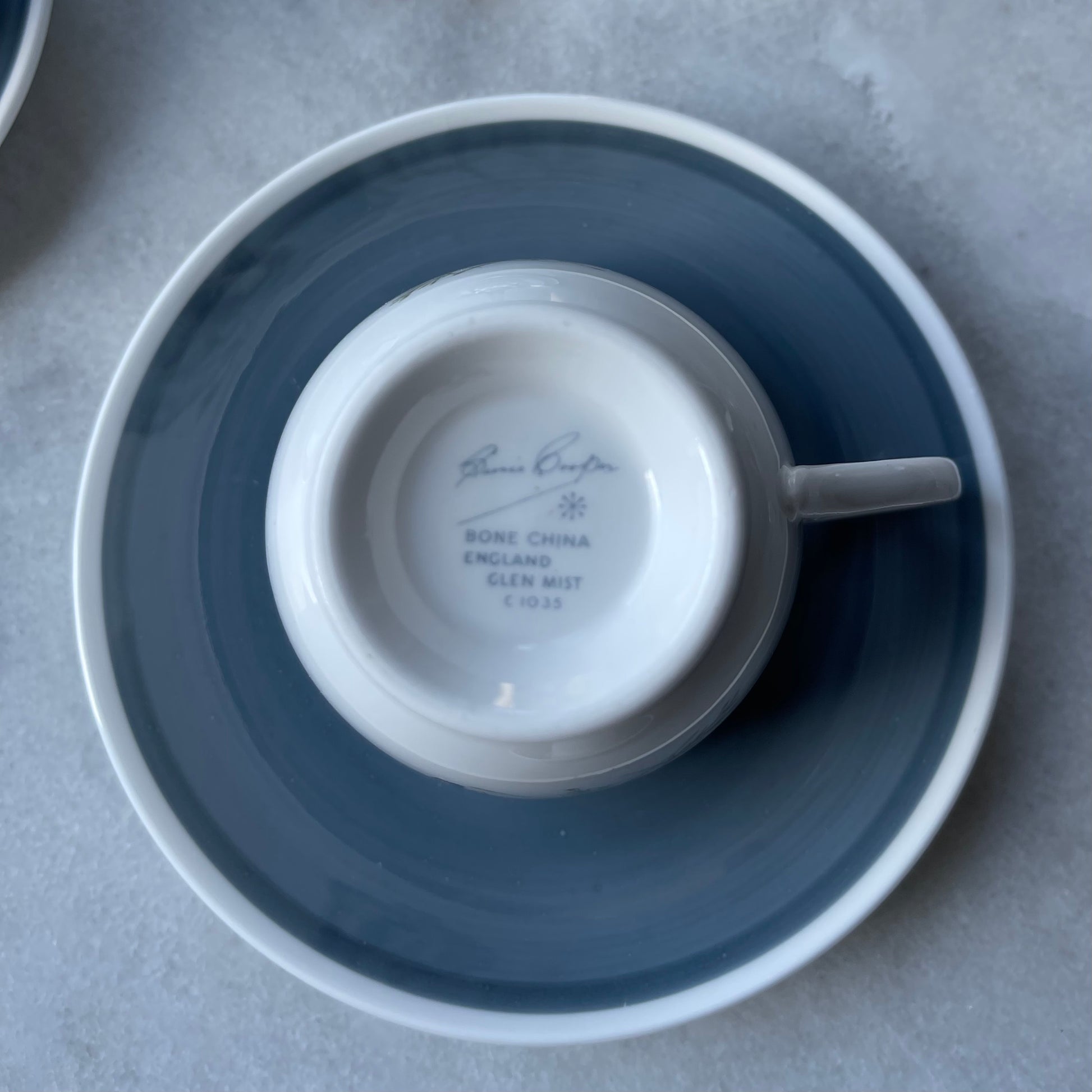 <グレン>とは、主にスコットランドのハイランド地方に点在する渓谷のこと。夏でも涼しい高山帯にたなびく霞(=ミスト)の中に、陶器デザイナー、スージー·クーパーの感受性を以てして神秘的に佇む青いケシの花を見出したのでしょうか。ハイランド地方と言えば妖精伝説!なんて想いを馳せていますと、グレンミストの佇まいがますます幻想的に思えてまいります。