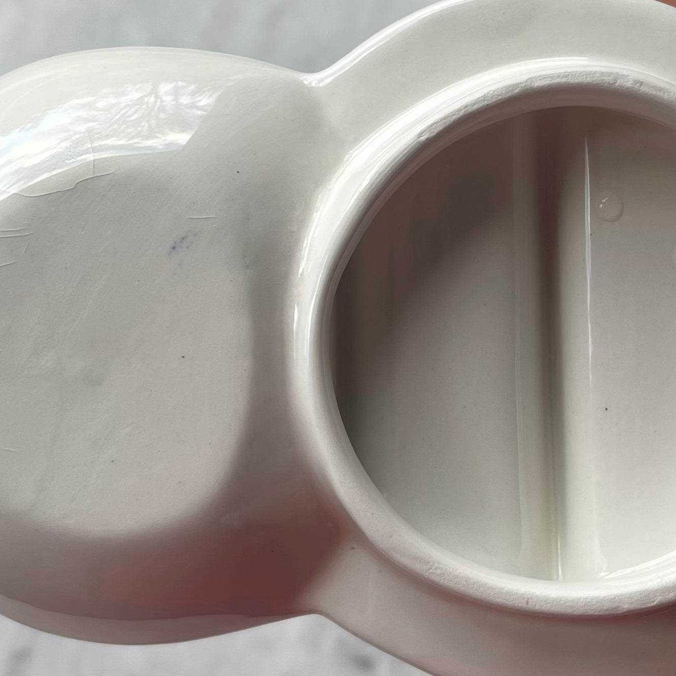 目立つ傷や欠け、シミなどもなく、底に至るまで汚れも最小限で非常に綺麗なお品です。ボウル部分の裏側に少し貫入が見られますが、テーブルなどに接着する側ですので、店主もショップに持って帰り水に浸して洗ってみるまで気づきませんでした。柄に濃淡があるのは、バーレイ商品の特徴で個性として捉えていただければと思います。美品ですが、あくまでもヴィンテージ品ですので、極小のすり傷などがある場合もございますことを了承くださいませ。