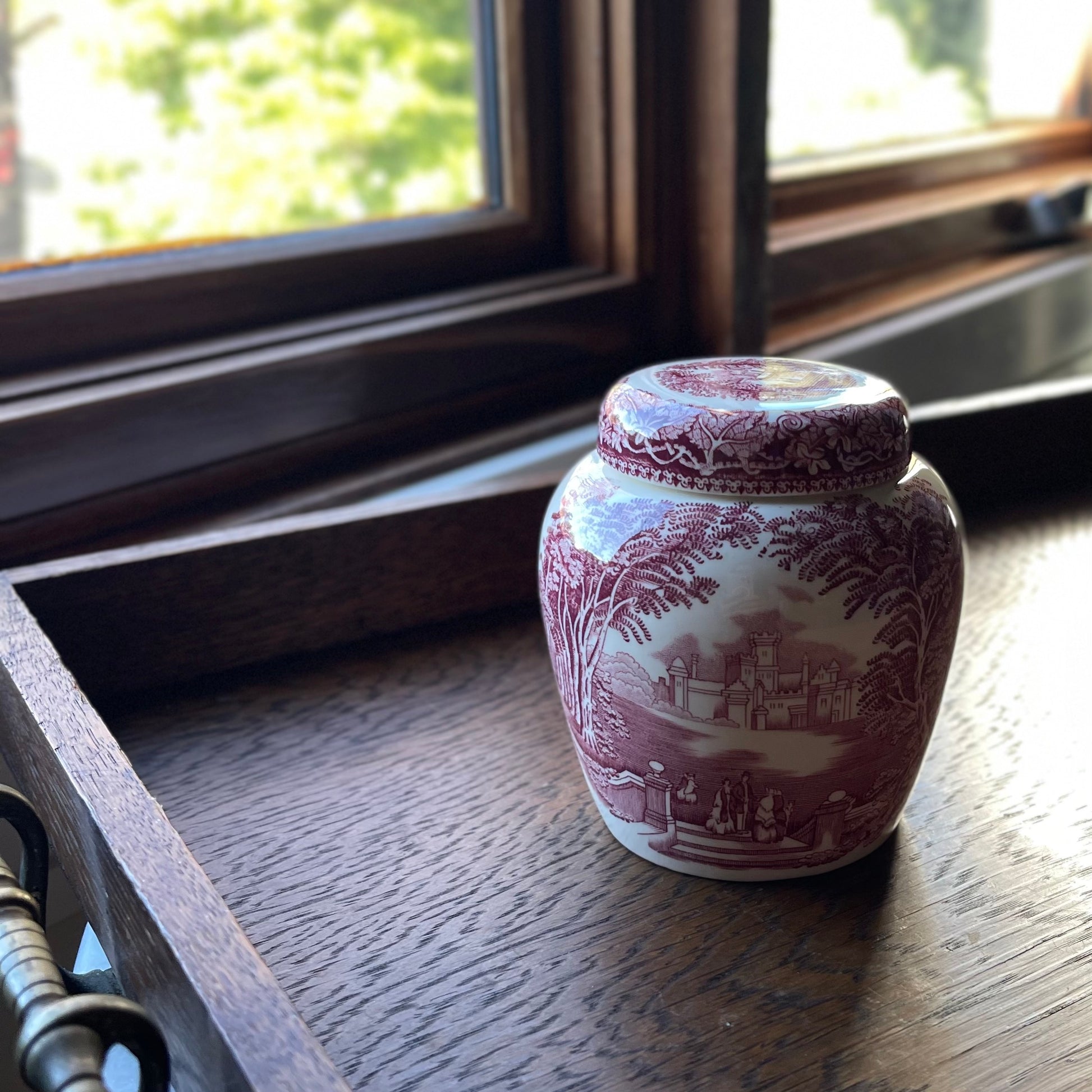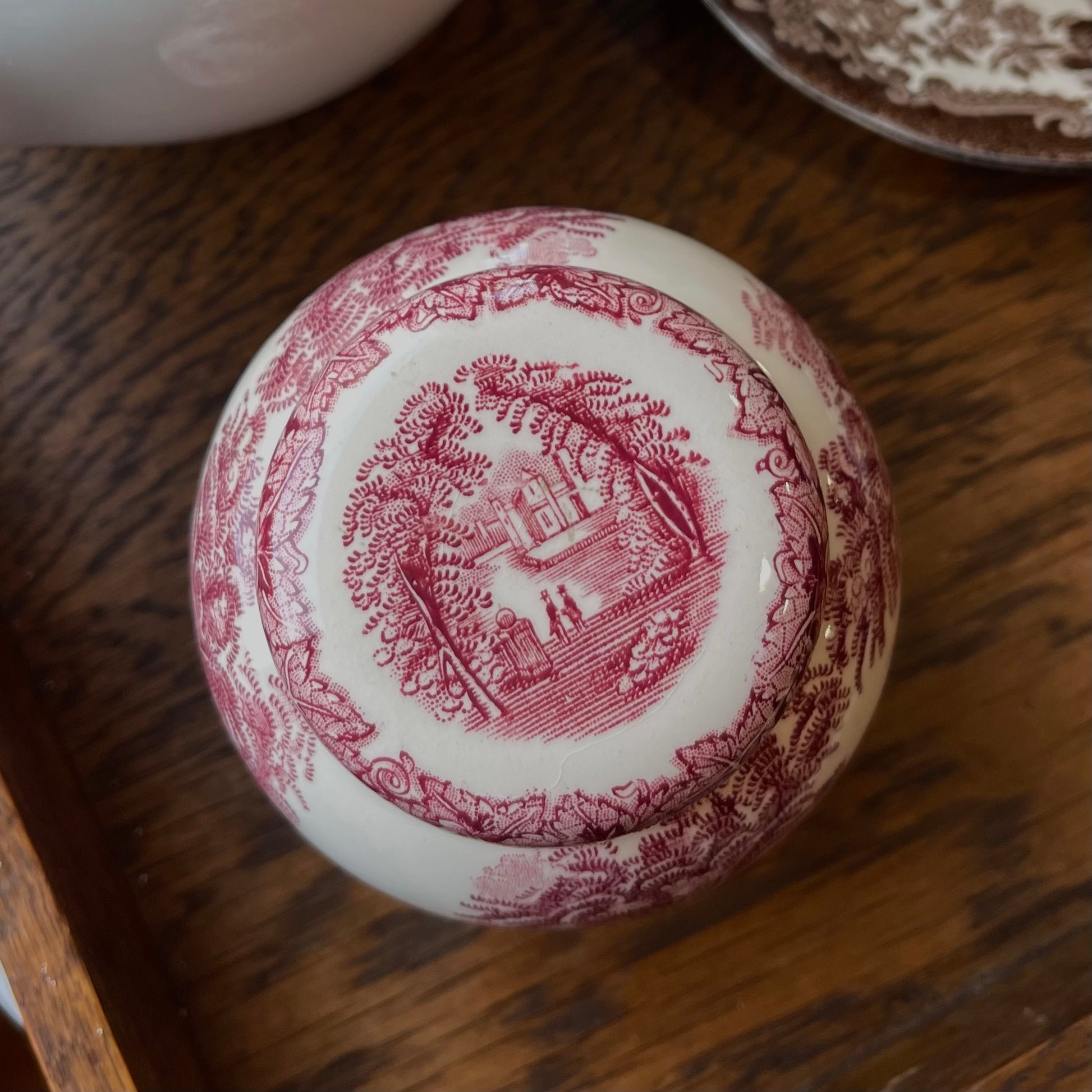 これぞイングランドのピクチャレスク。ロマンチックな風景画が麗しいメイソンズの<Vista(ヴィスタ)>パターンのティーキャディーです。