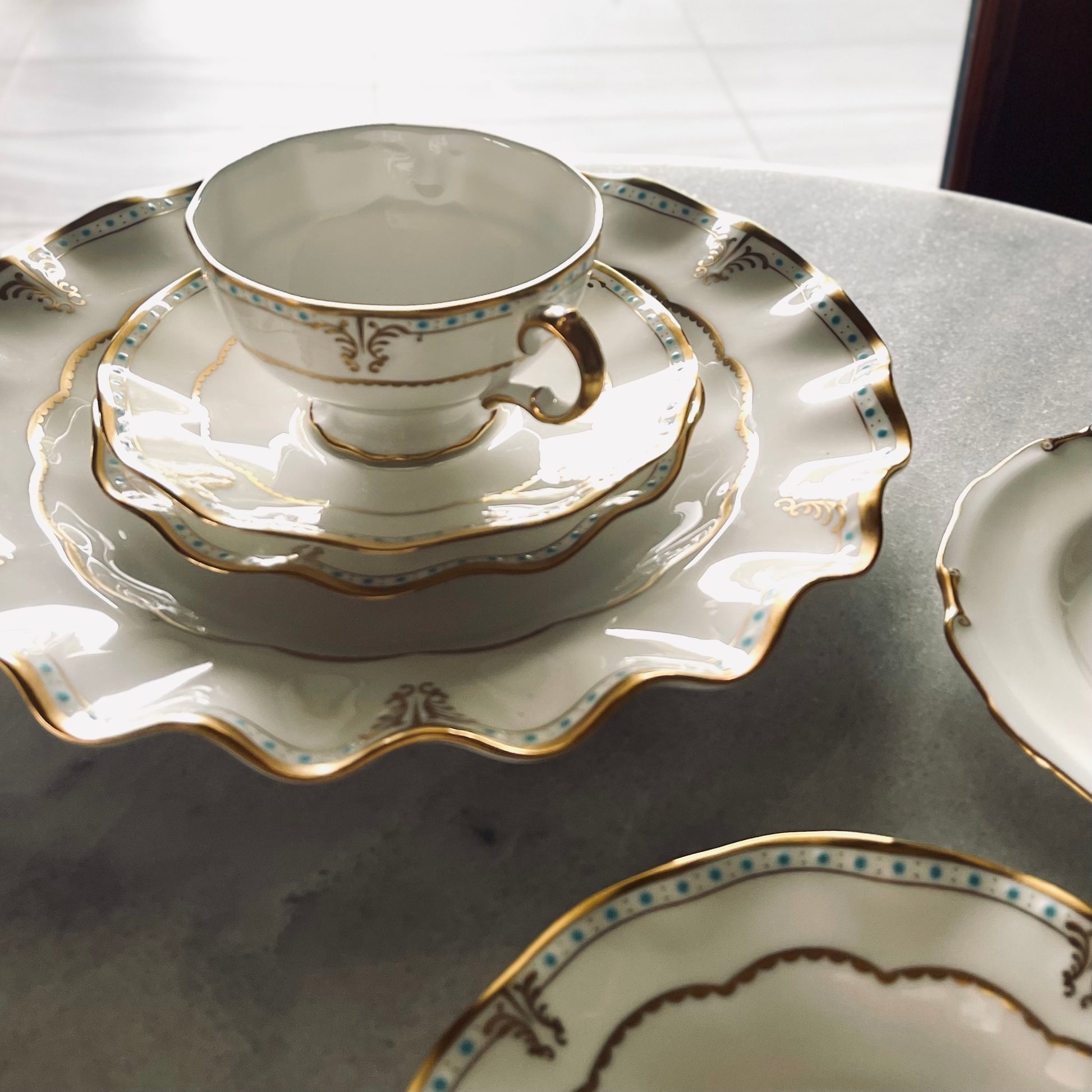 この度ロンバルディシリーズのティーカップトリオも2客入荷いたしております。ケーキやサンドイッチ等のサービングプレートとしてご使用いただいても素敵かなと思い、こちらのディナープレートサイズを一緒に買い付けて参りました。ロンバルディシリーズのトリオを2客以上、若しくはデザートプレート(22cm)やクリームスープボウル&ソーサー、サラダプレート等の他のアイテムを御所望の方がおられましたら、、今回買い付けてはおりませんが、お取り寄せも承りますのでお気軽にお声がけくださいませ。